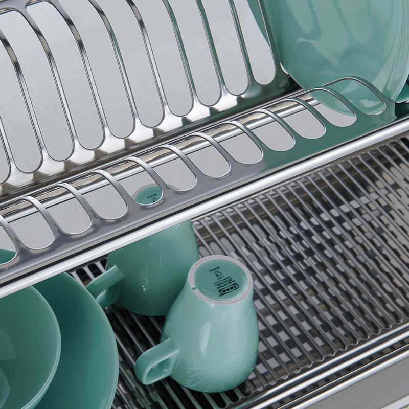 The open wire structure promotes rapid air circulation, reducing drying time by 50% compared to enclosed racks and minimizing bacterial growth. The drip tray is removable for dishwasher cleaning, and the entire unit can be disassembled (no tools needed) for deep washing to remove food residue or mineral deposits.