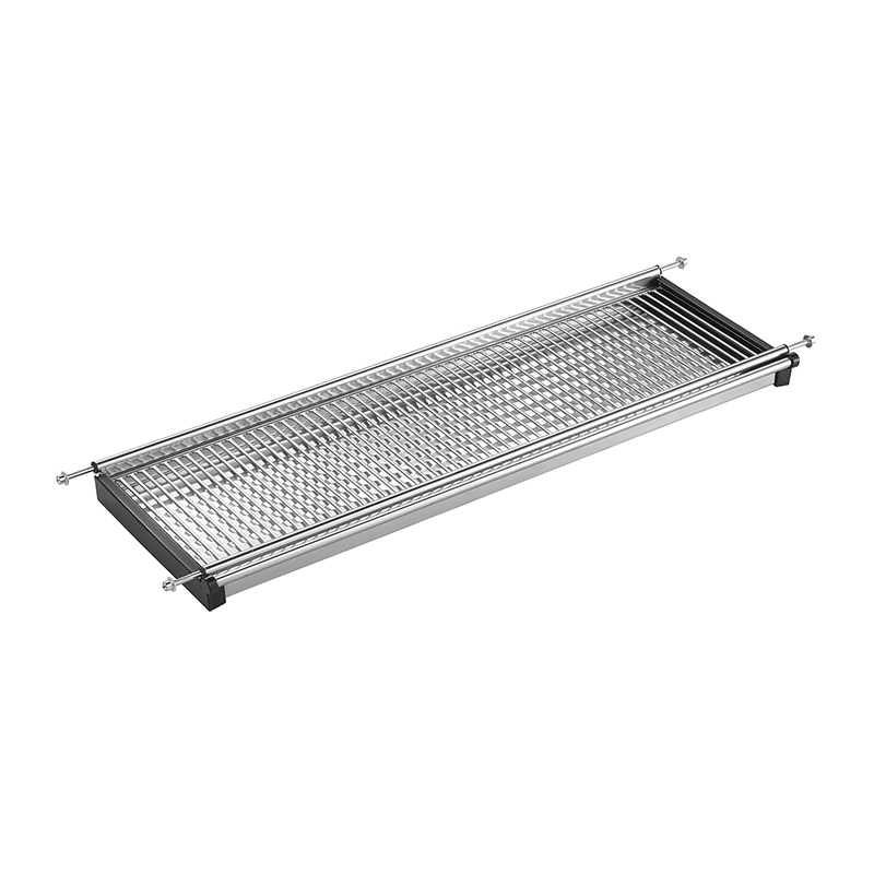 The rust-resistant 18/8 stainless steel frame undergoes electrolytic polishing, creating a passivation layer that resists corrosion from water and detergent. The thickened wire mesh (2.5mm diameter) with reinforced welding supports heavy loads (up to 15kg per tier) without bending, even when holding cast iron pans. The surface is treated with a mirror-polished finish (Ra ≤0.8μm) that resists fingerprints and adds a sleek look to modern kitchens.
