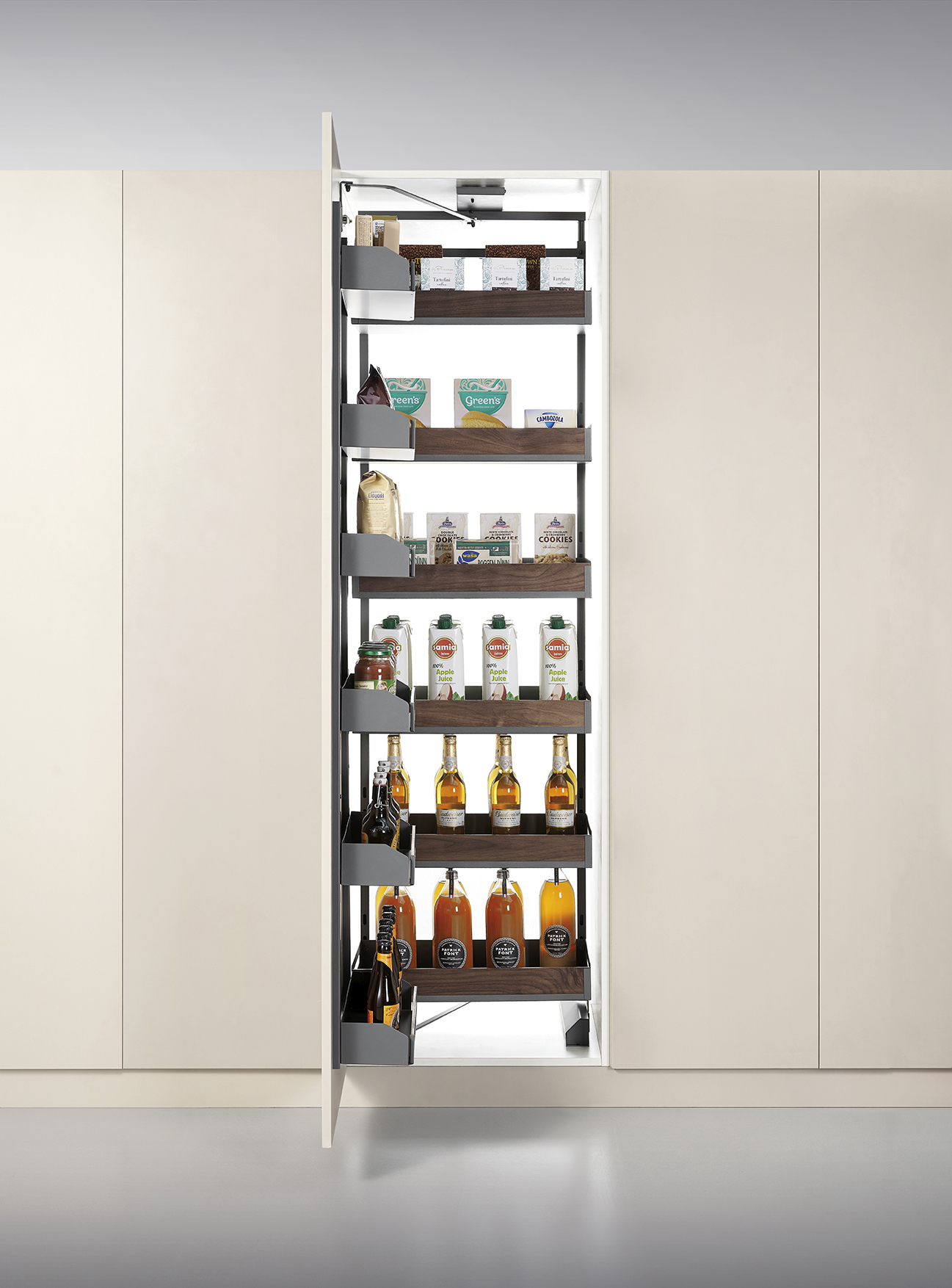• Beverage, condiment, grocery, and snack storage center