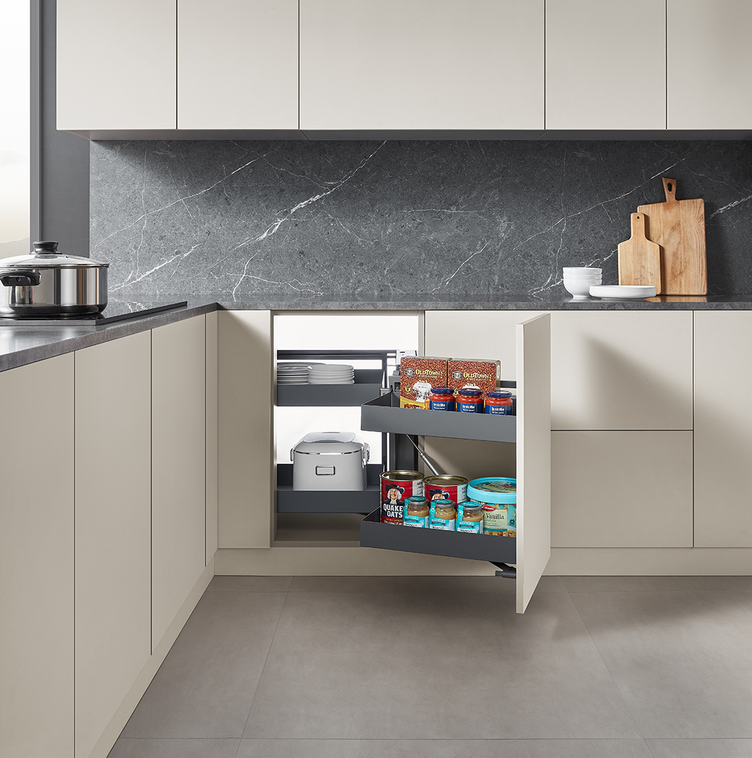 Space Optimization: Maximizes corner space utilization with a two-layer pull-out system.