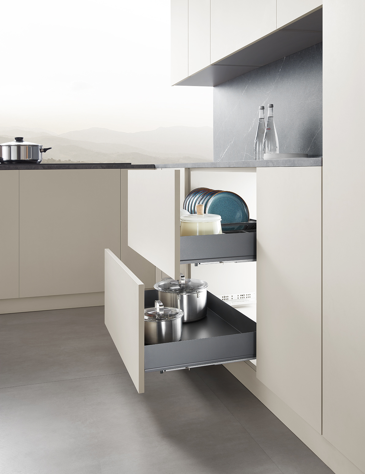Sleek Minimalist Design: Clean flat-bottom style for flexible storage of kitchen items.