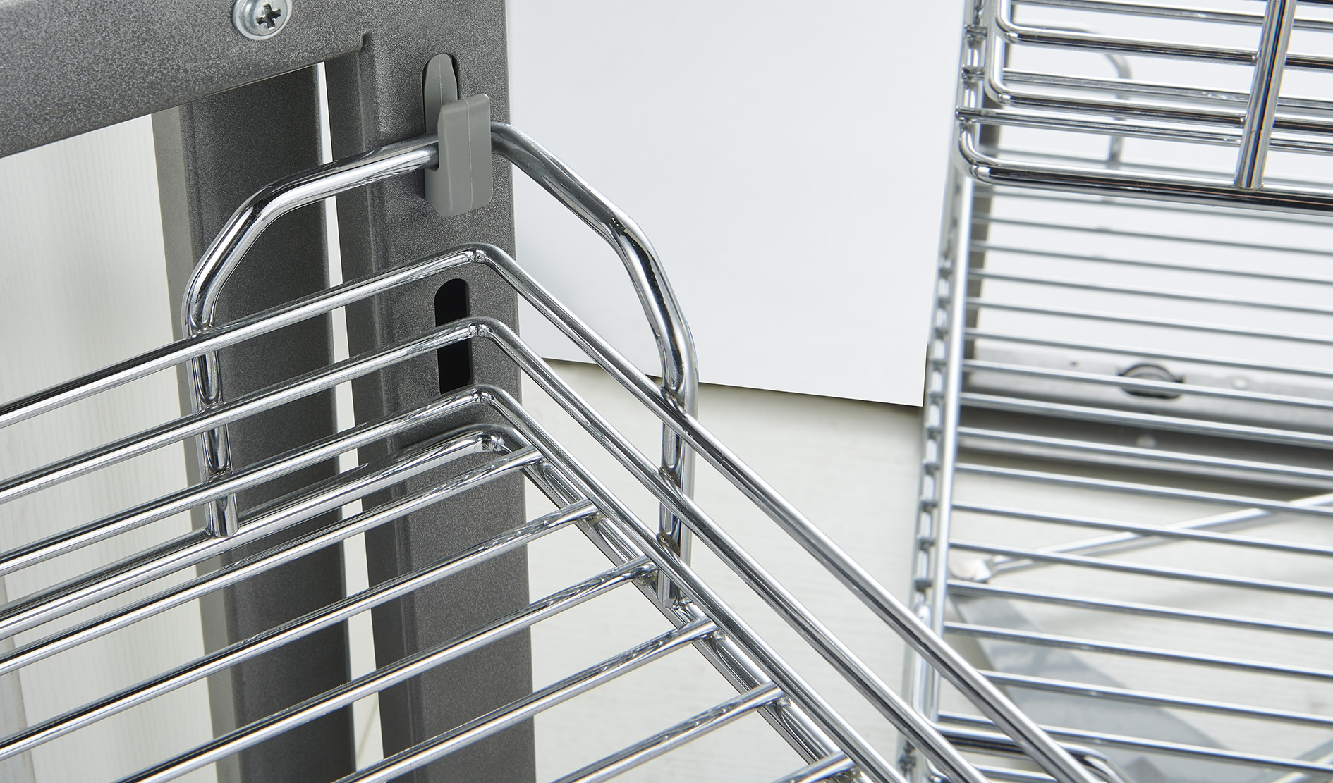 Built from premium cold-rolled steel and available in Chrome, Powder-Coated, and Electrolysis surface finishes, the rack offers strong corrosion resistance and long-lasting durability. Each unit undergoes 48–72 hours of salt-spray testing and 50,000 opening-cycle tests to ensure reliable performance under daily kitchen use.
