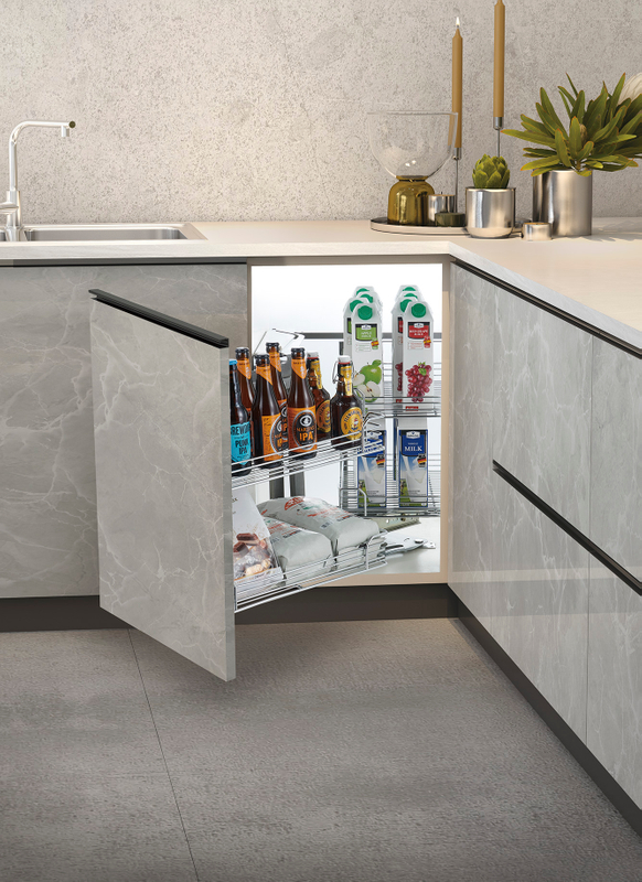 Perfectly suited for L-shaped and U-shaped cabinet layouts where corner storage is required. It maximizes corner utilization and maintains a smooth workflow area around the sink and stove. A smart solution for small and mid-size apartments looking to optimize every centimeter of cabinet space.