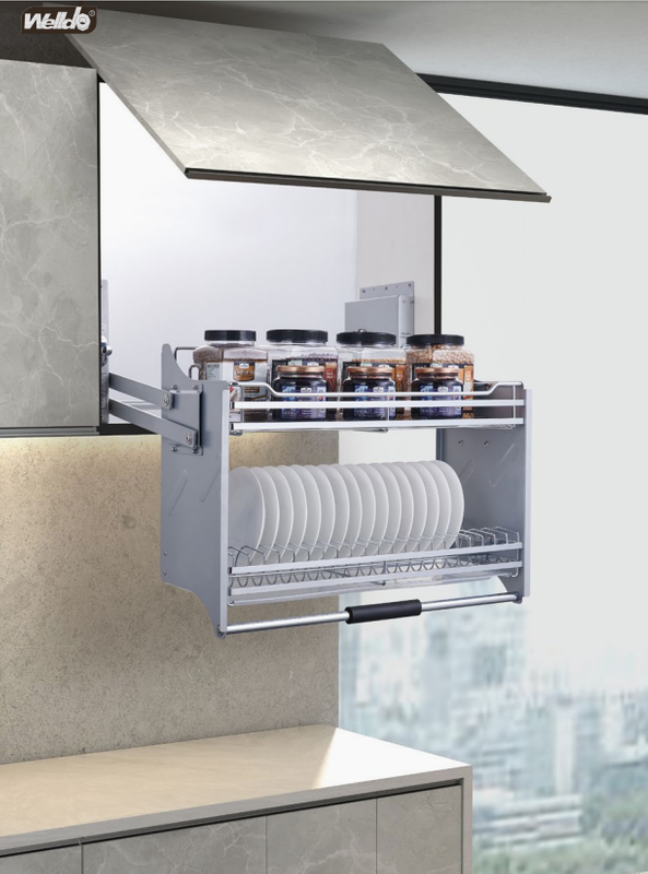 With its clear functional layout and space-efficient design, this pull down dish basket is well suited for modern kitchen cabinet systems. It offers cabinet manufacturers and project contractors a practical solution for combining dish storage and light condiment organization in upper wall cabinets.
