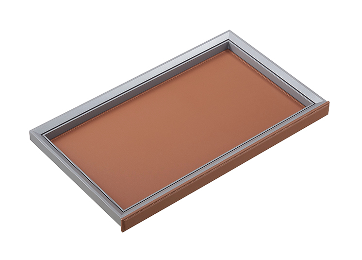 The tray uses aluminum framing + MDF base for durability and premium aesthetics.