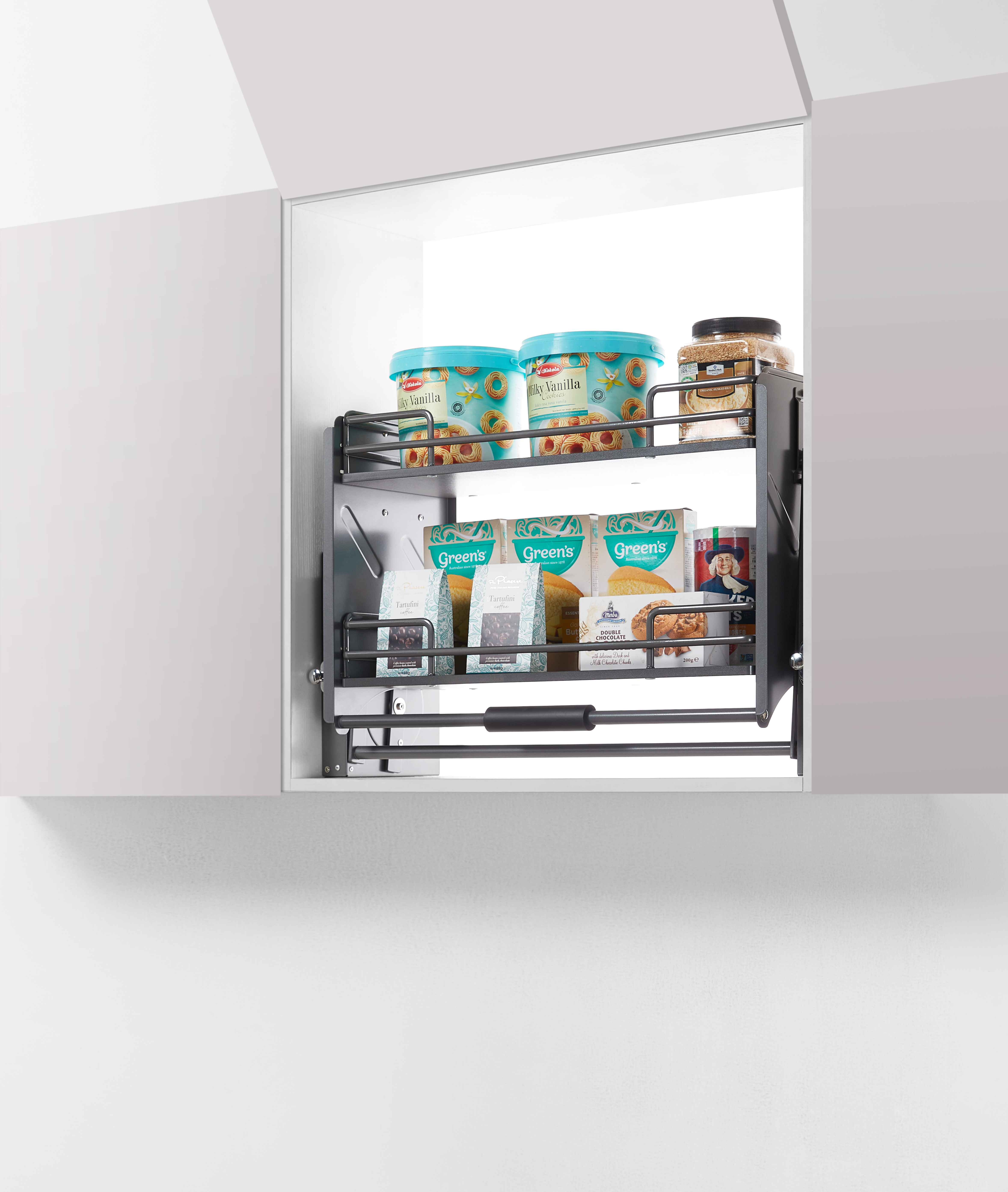• Sturdy double-layer design — maximizes storage in compact upper cabinets.