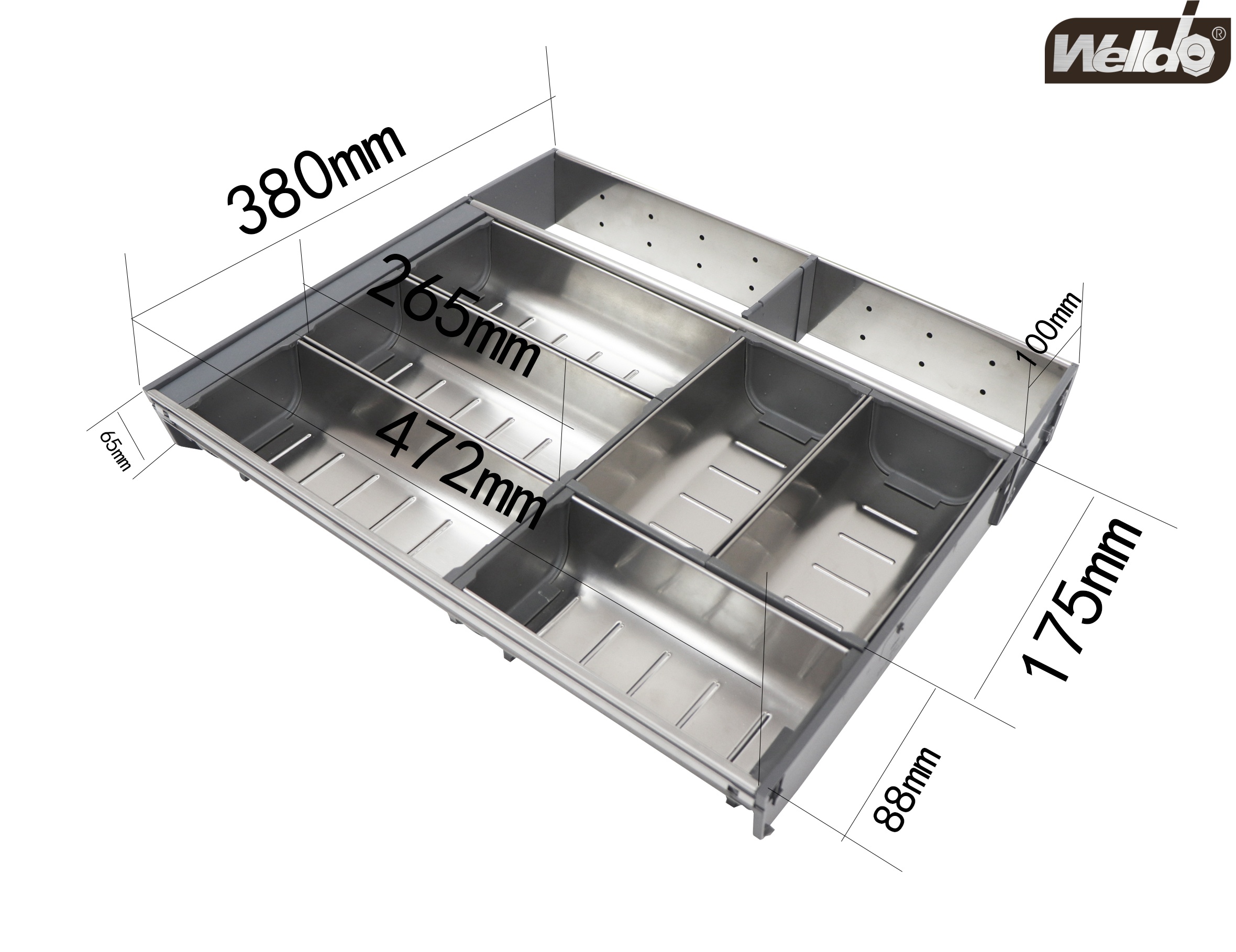 Made from premium stainless steel, the cutlery tray offers excellent corrosion resistance, durability, and hygiene performance. The smooth metal surface is resistant to moisture and stains, ensuring long-term use in kitchen environments. Stainless steel construction also provides a modern appearance that matches high-end cabinet systems and professional kitchen standards.