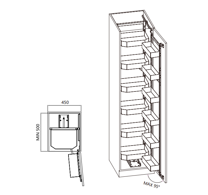 Suitable for tall and narrow kitchen cabinets or integrated pantry units.