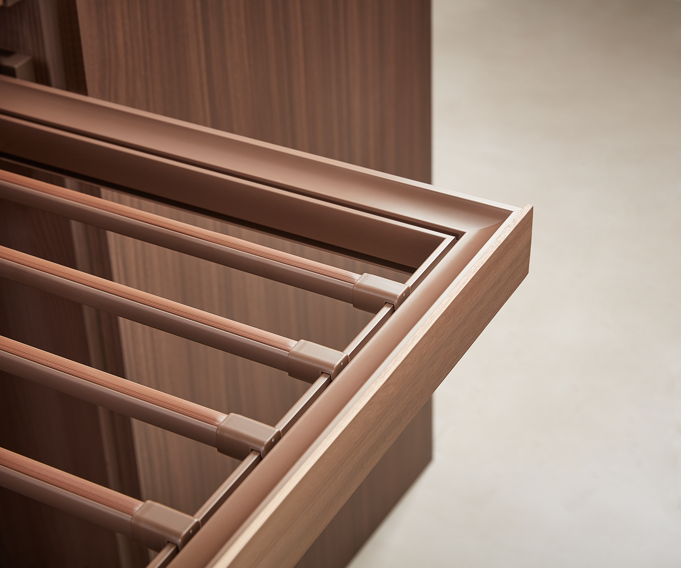 Solid aluminum frame paired with natural walnut edging for a sophisticated look.