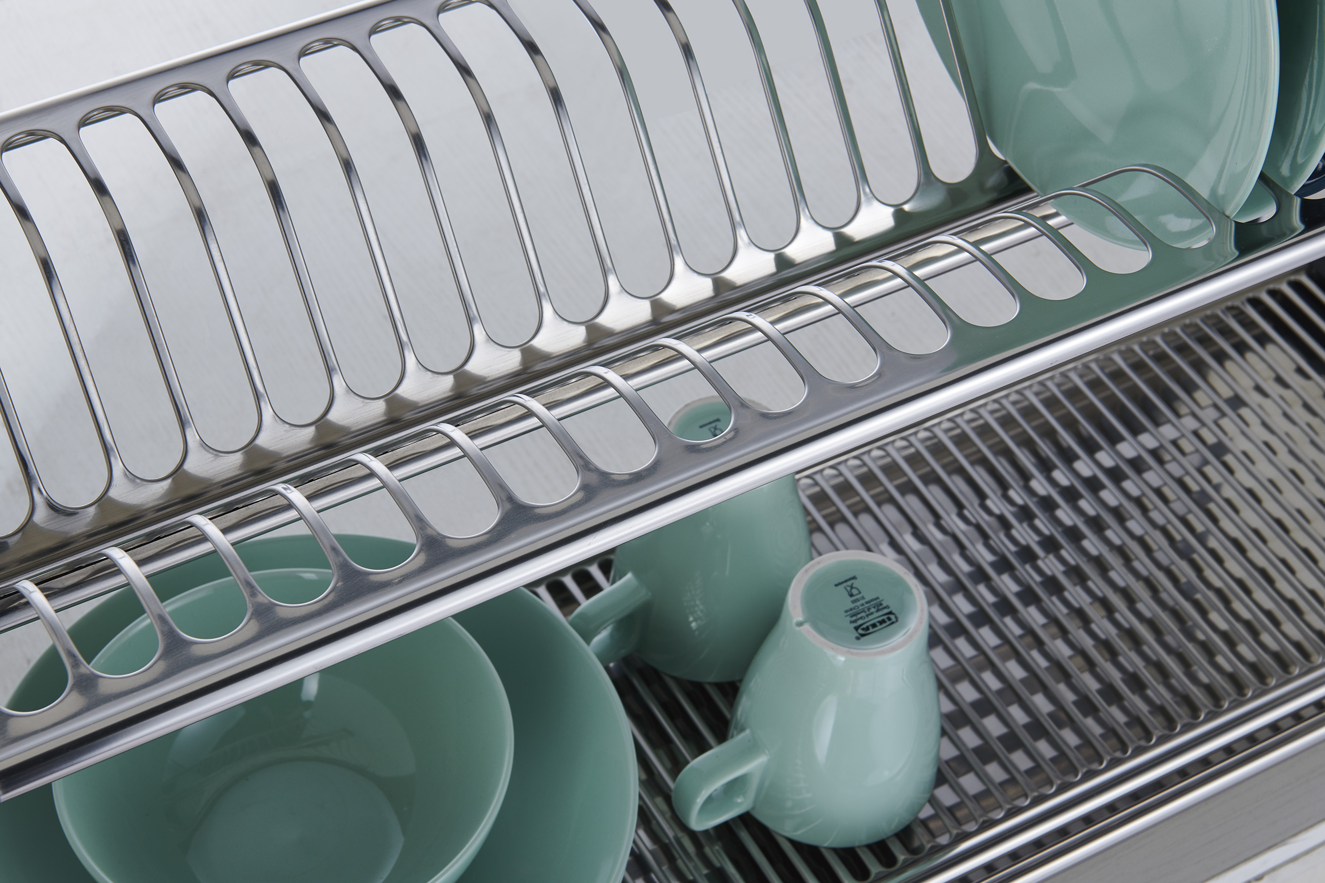 Its upper layer is specially designed for vertical plate storage and drainage, while the lower layer provides additional space for bowls, cups and daily kitchen essentials.