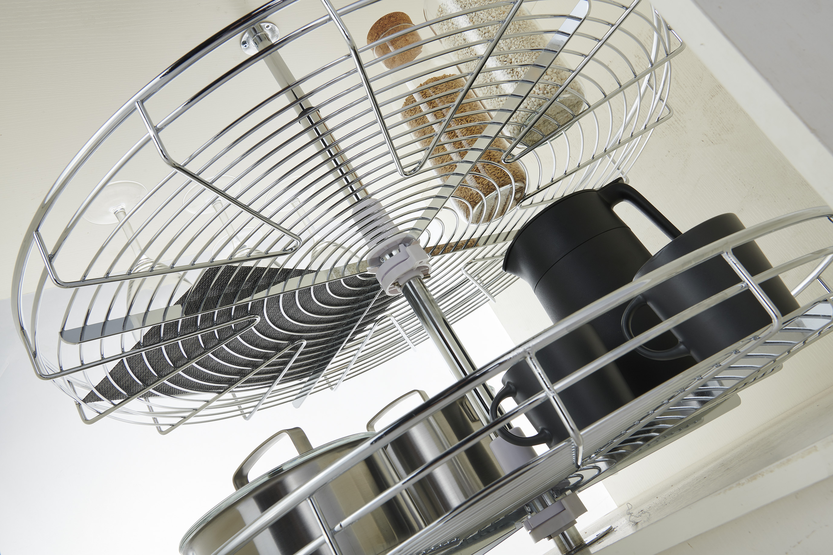 Unlike fixed shelves, all items rotate into view, helping keep kitchen storage organized and accessible.