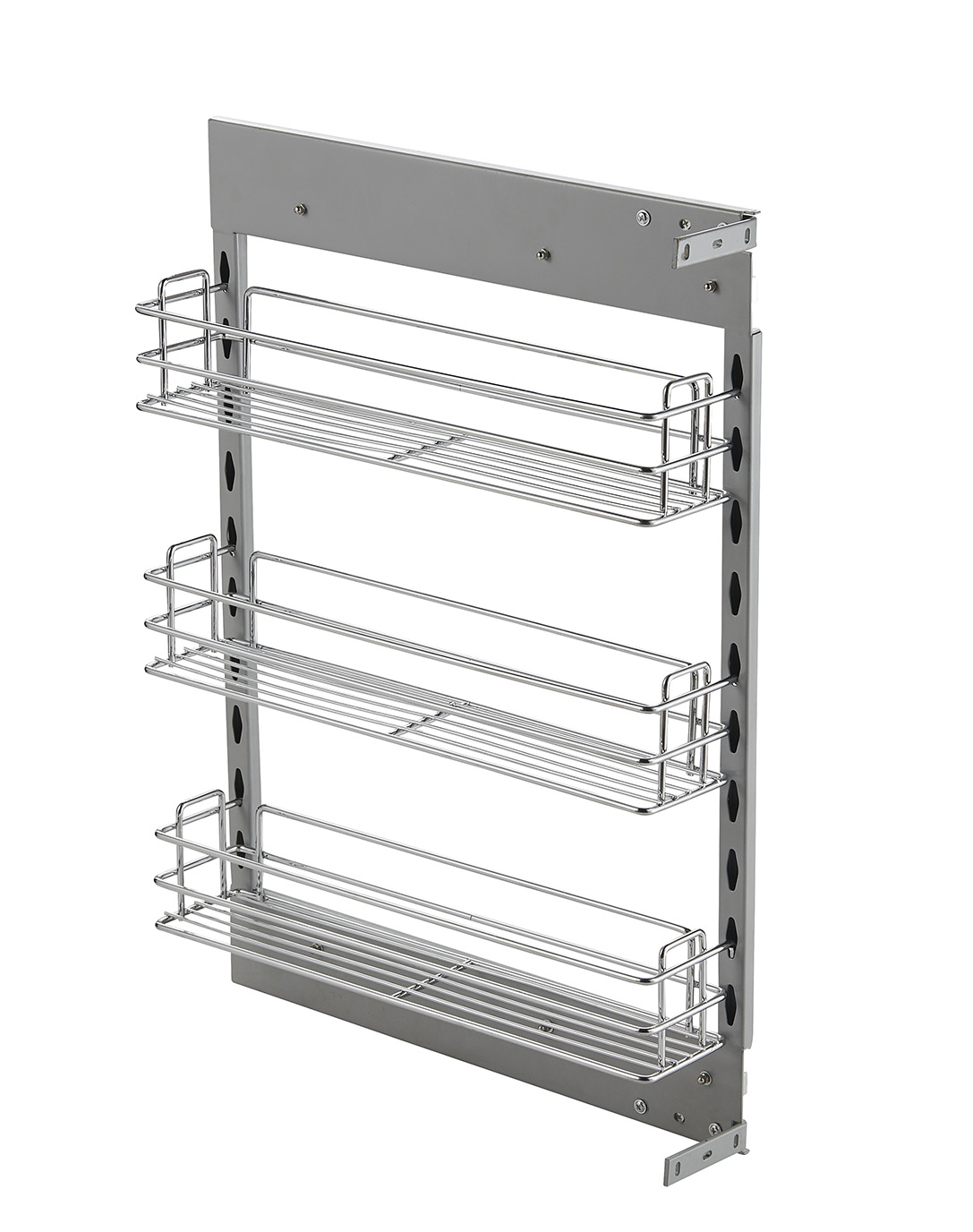The Slim Pull Out Pantry Storage System is designed for narrow kitchen cabinets where efficient vertical organization is essential. With multi-tier pull out storage and front-attached operation, this system creates high-capacity pantry organization while maintaining easy access.