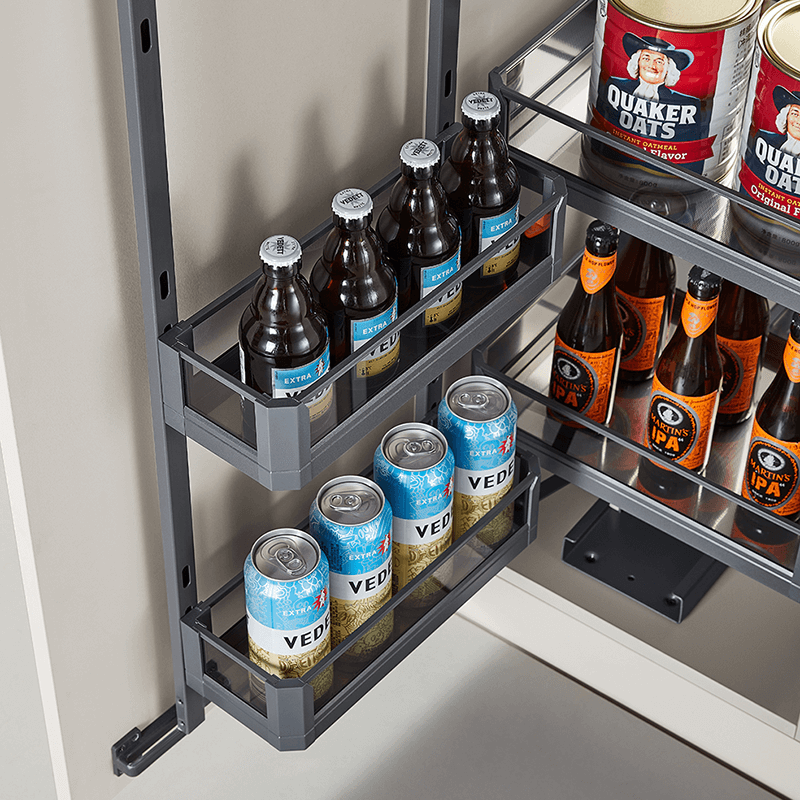 The tall cabinet pantry pull out basket is designed to maximize vertical storage space in modern kitchens. With a full-extension soft-closing sliding system, it allows users to access all stored items smoothly and efficiently. The multi-layer structure provides organized storage for bottles, cans, and packaged food, making it ideal for both residential and commercial kitchen applications.